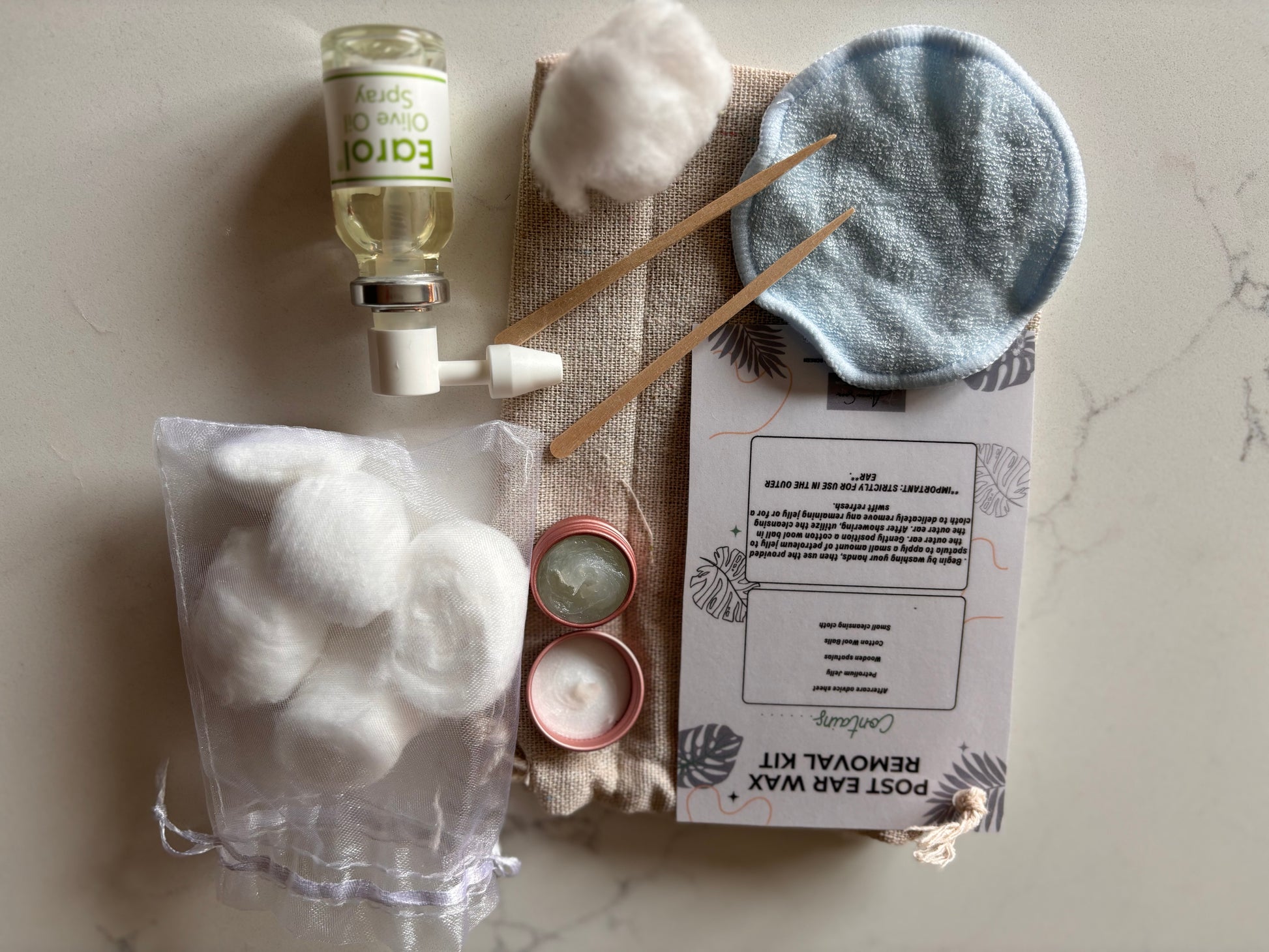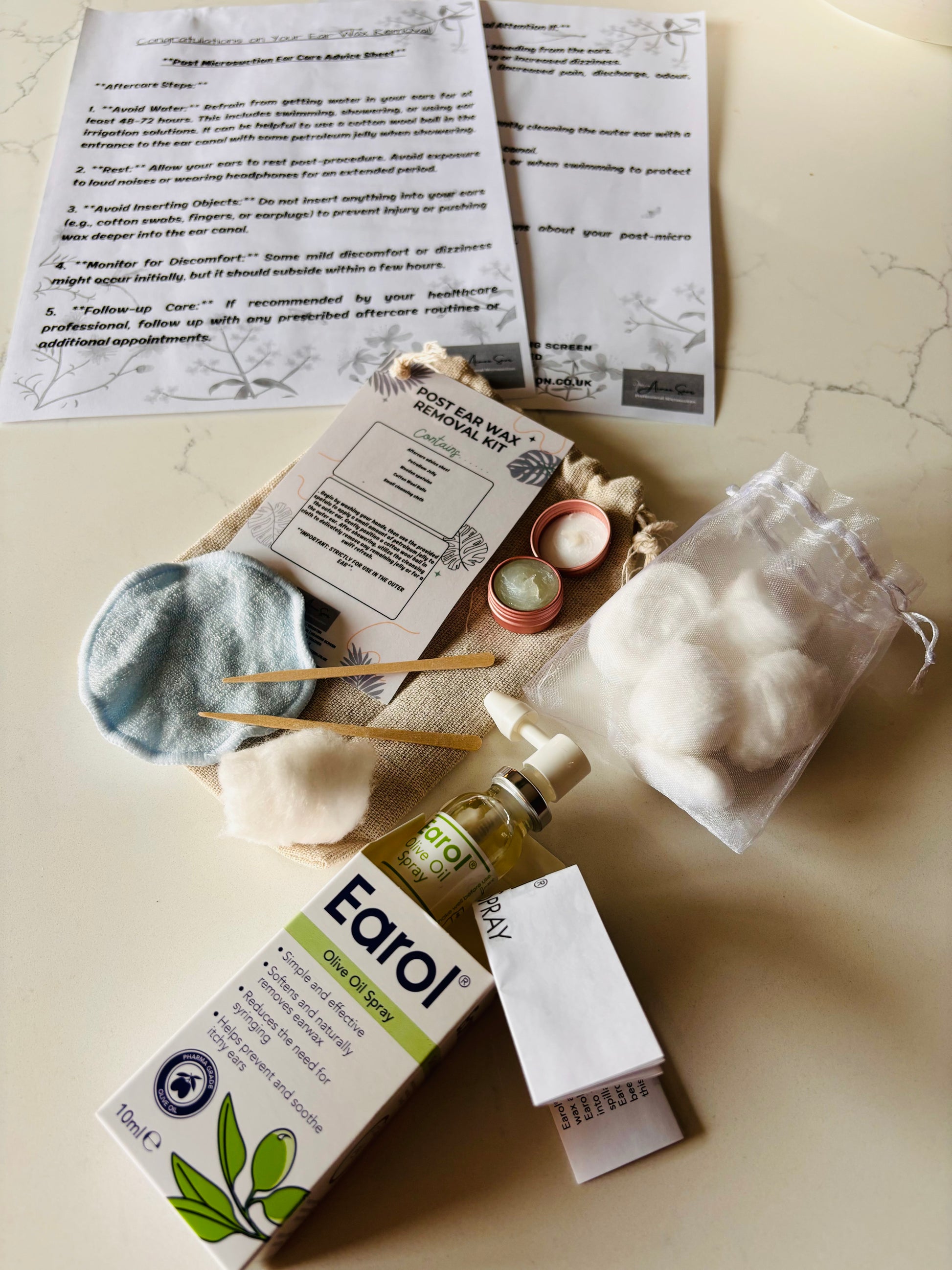 💫💫This compact ear care kit is perfect for post-ear wax removal, serving both pre and post-procedure needs. It includes essentials for maintaining dry ears, crucial in preventing infections, and offers valuable aftercare guidance. Additionally, it includes a versatile product (EAROL) that is proven to aid in ear wax softening before removal and going forward reduces the necessity for future visits